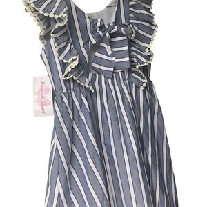 NWT Bonnie Jean Girl’s Blue & White Stripe Summer Dress Back Bow Ruffle Sleeves