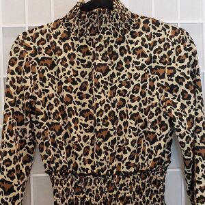 NWT Boohoo Leopard Print Wide Leg Elastic Waist Mock Neck Jumpsuit Size 4