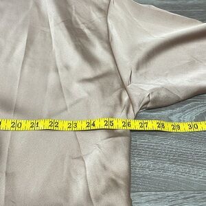 NWT Boohoo Satin Wrap Top Long Sleeve Blouse Nude 20. Open front, removable waist tie, belt loops. Please see photos for approximate measurements and details. Item may show difference in color based upon photography and perception. Photos are part of the description, as everyone’s level of condition may vary. From smoke free and pet free home. All packages are shipped the same or next business day.