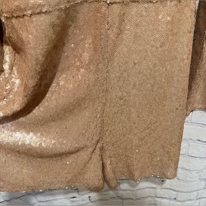 NWT Boohoo Sequin Eva Plunge Front Cut Side Nude Matte Sequin Short Romper 10