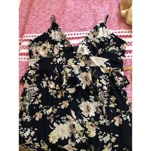 NWT Boohoo Sleeveless Tiered Dress Size 20 Navy Blue Peplum Floral Cottage