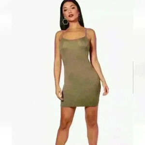 NWT Boohoo Women's Freida Basic Strappy Cami Bodycon Dress - KHAKI