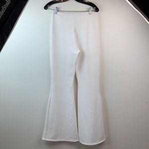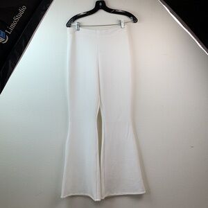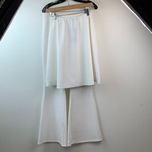 NWT Boohoo ivory strapless long line bandeau tunic + flare leg pull on pants set