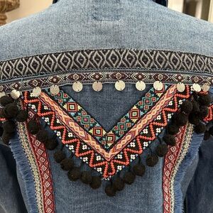 Fabulous Western/Aztec look embellished jean jacket by BoomBoom Jeans. Size large. New
