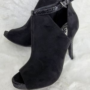 NWT Bootie peep toe heels strap snake embossed suede comfortable GBG Los Angeles