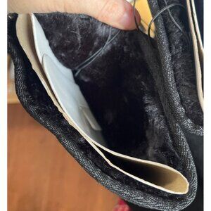Warm black faux shearling line boots, leather exterior, flat non slip sole, comfy