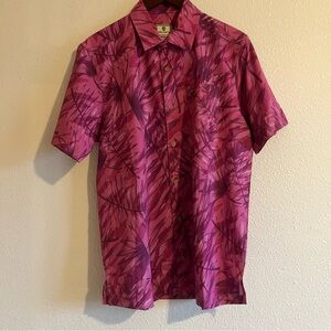 NWT Born Primitive Men's Voyager Button Up Pink Print Jungle Shirt Size Medium