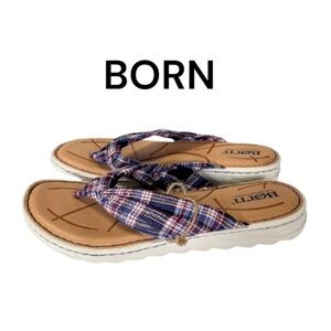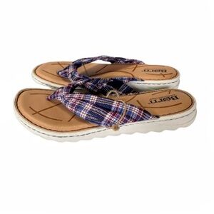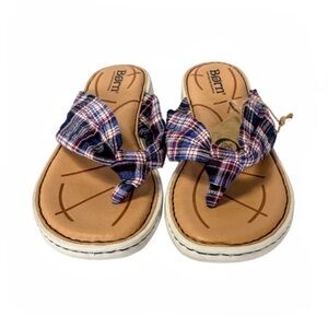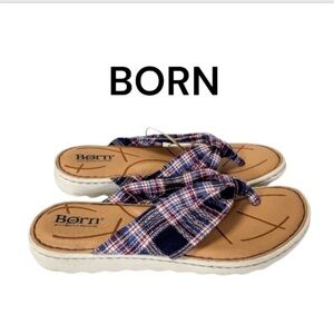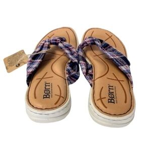 NWT Born Tide Plaid Navy Multicolored Flip Flop Thong Sandals Size 6