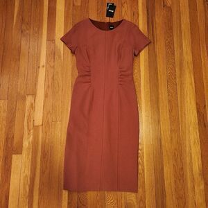 NWT Boss Hugo Boss Dakela Sheath Dress, Pencil Skirt, Ruching, Short Sleeve, Rosewood/Mauve, Sz 8