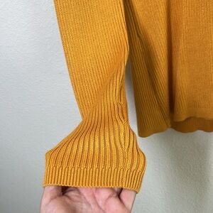 Keywords: Boston Proper sweater, yellow ribbed knit, half zip pullover, soft viscose sweater, size M, new with tags, lightweight fall sweater, luxe feel