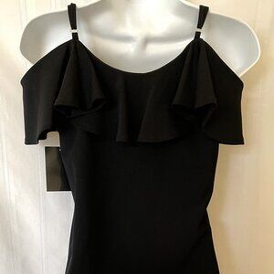 NWT Boston Proper Ruffled Cocktail Little Black Dress Open Shoulder XXS CUTE