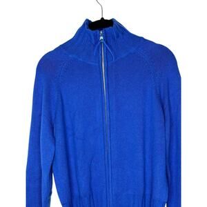NWT Boston Proper Womens Silk Cashmere Blend Zip Front Sweater XS Mock Neck Blue