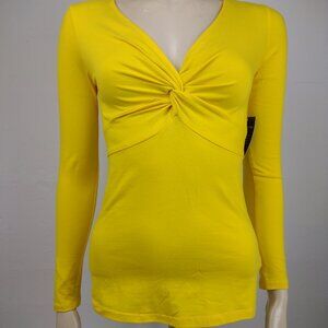 NWT Boston Proper yellow twisted V-Neck casual long sleeve blouse ladies XXS