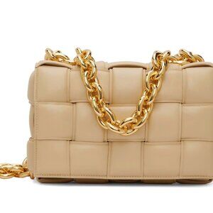 NWT Bottega Cassette with chain Rich color 🔥Dust bag included Topped with large-scale chain straps, this woven leather bag has a padded finish. Shoulder chain Hand chain Top flap with snap closure Goldtone hardware One interior compartment Interior zip pocket Leather Made in Italy
