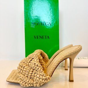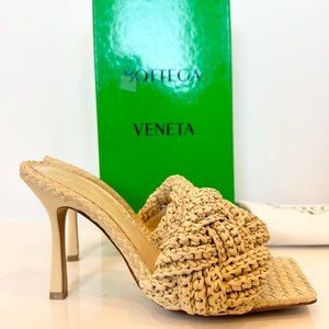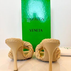 NWT Bottega Veneta Lido Slip On High Heel Sandals Cane Sugar Raffia 39 IT