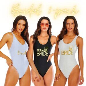 Hurry! Grab this hot lot of 3 Bride & Team Bride swim suits for you and your Bride Squad!