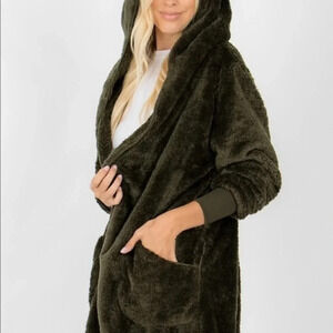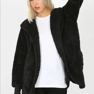 NWT Boutique Faux fur hooded jacket- cream winter cozy