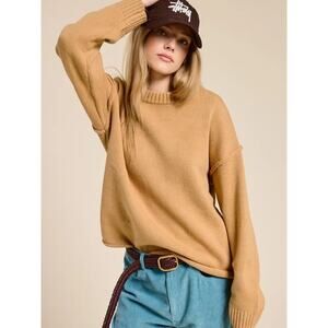 Made from a midweight knit, this pullover sweater features a ribbed crew neckline, ribbed sleeve cuffs, raw-edge hem, and drop shoulders highlighted by exposed outseam detailing for a subtle, modern touch. Finished with an oversized, relaxed silhouette, it’s the perfect everyday layer, cozy enough to wear solo and easy to style through the colder months.