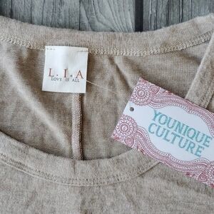 Nwt in excellent condition. Life is fine with a glass of wine sweater/tunic. Heathered oatmeal color. Super soft and stretchy. Great for fall/winter with a pair of skinny jeans or leggings.