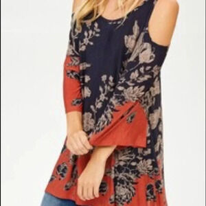NWT Boutique navy coral floral cold shoulder flowy top bell sleeve