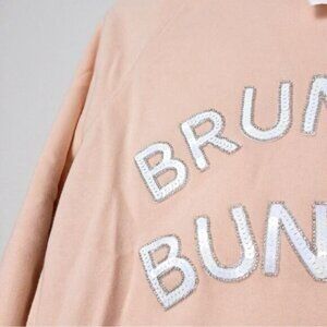 NWT Bow & Drape Brunch Sequin Crew Neck Pullover Sweatshirt M Pink Fleece