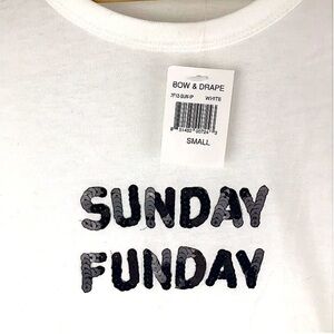 NWT Bow & Drape Womens Sunday Funday Sequined Embellished T-Shirt, White, SMALL