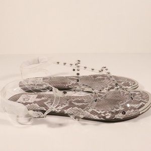 New with tags and box Dolce Vita Lenny Sandals in Clear, size 10. Offers welcomed, no trades! These beautiful sandals will be perfect for the spring and summertime. The snakeskin print on the bottom of the shoe is on trend for 2022, and the clear overlay is so breathable and comfy!