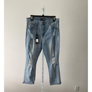 NWT Boyfriend Jeans 13 Light Wash Distressed Cropped Streetwear Festival Grunge