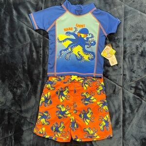 NWT Boys 24M Rash Guard and Swim Trunk Set - Octopus. UPF 50+ UV Protection