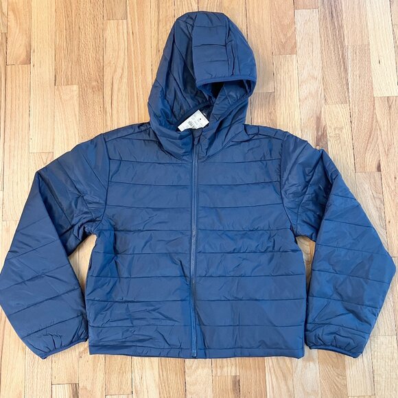 Brand new boys J.Crew Factory Crewcuts navy blue puffy jacket with hood. Size XL 12/14. While zipped the armpit to armpit measurement is approximately 18.5", te total length from the shoulder to the waist is 20.5" and the shoulder seam to wrist is 22.5". Warm but lightweight. Perfect for many seasons. Comes from non-smoking home.