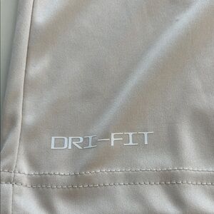 NWT boys size s Nike set with a light beige tee featuring a bold logo. Paired with dark olive shorts. Ideal for casual outings.