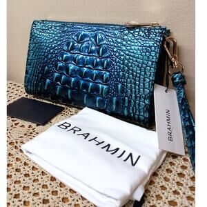 NWT Brahmin DAISY Leather Wristlet Clutch BLUE PATINA