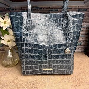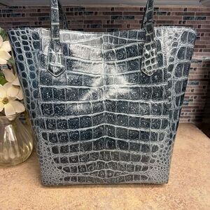 New with tags Brahmin Jayden large tote purse featured in an Obsidian Veil, a beautiful green flat croc.