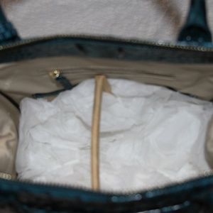 Featured in Juniper Melbourne, a nod to all things vintage. This deep teal has a natural tonal finish and is a trending new color for this Holiday season. Made with genuine leather.