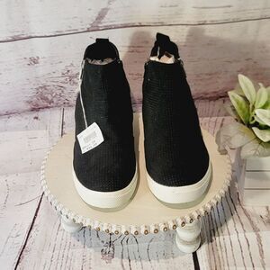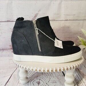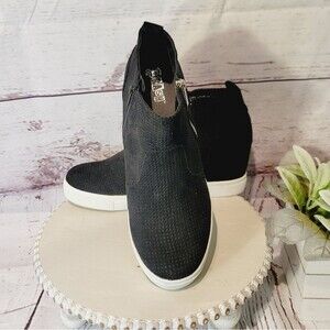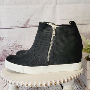 NWT Brash Black Faux Suede Perforated Wedge Ankle Heeled Bootie Sneaker Size 10