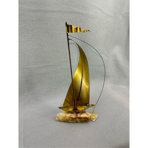 NWT Brass Sail Boat Sculpture Vintage 1981 Calif. Artist YOSI Signed Tags 16”