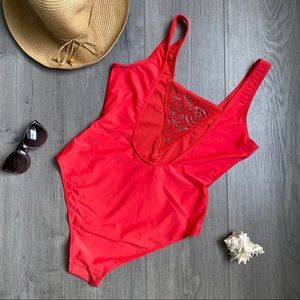 Main: 84% Polyester, 16% Spandex, Lining: 100% Polyester, Trim: 90% Polyester, 10% Spandex.