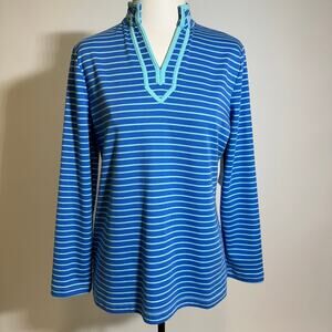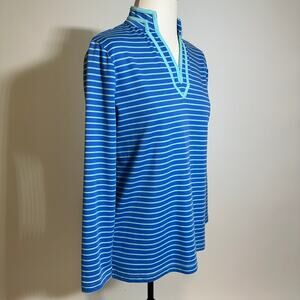 NWT Breckenridge Blue Green Striped V-Neck Blouse