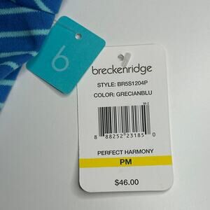 NWT Breckenridge Blue Green Striped V-Neck Blouse Womens Size Petite Medium PM