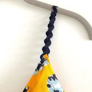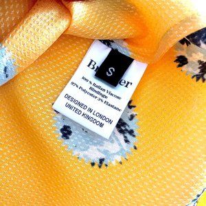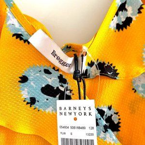 Brøgger’s beautiful ruffle cami top features a blue and white abstract floral motif on a bright yellow jacquard fabric. The colorful details and bold print showcase the style ethos of this London based luxury clothing label by Danish designer Julie Brøgger. With black zigzag spaghetti straps, v-neck, and a ruffle trim. Pullover style. Perfect summer top worn with jeans or dressed up paired with a mini skirt. Designed in London. Size small. New with tags.
