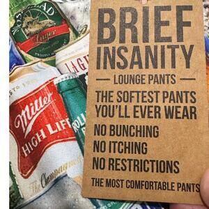 NWT Brief Insanity The Beers of America Men's Lounge Pants, size M. See photos for measurements.