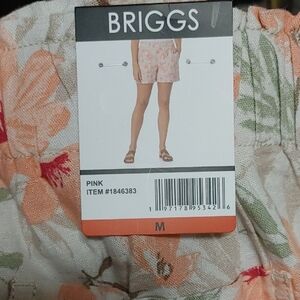 NWT Briggs Ladies’ Linen Blend Short, Pink floral M XXL