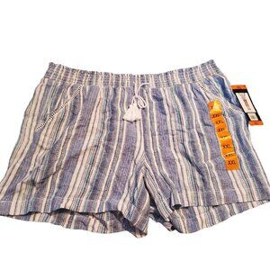 NWT Briggs White and Blue Striped Linen Shorts Boho Hippie Funky Pirate