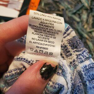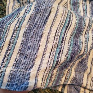 NWT Briggs Hippie striped white and blue shirts with Tassel draw string and elastic waist for comfort. Tagged Free People for exposure.