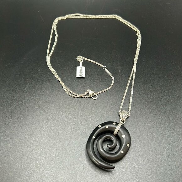 Brighton Free Spirit Spiral Necklace- resin- black pendant- crystals