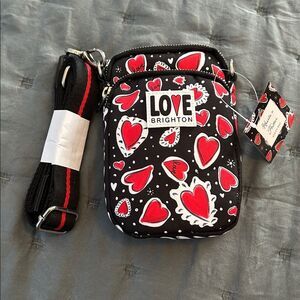 NWT Brighton Hearts a Flutter Utility Crossbody Bag Black Red White