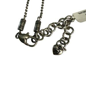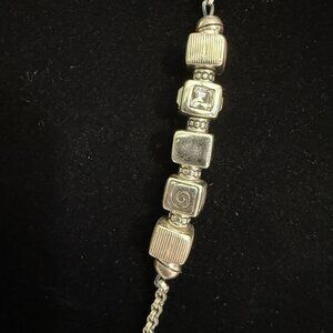 This NWT long silver-tone necklace offers a versatile design with decorative beaded stations and an adjustable lobster clasp, blending elegance with everyday wearability.