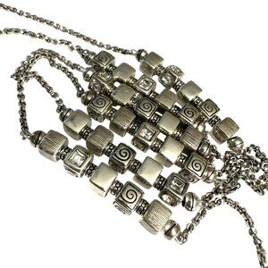 NWT Brighton Mayan Silver Tone Long Necklace With Decorative Beads Adjustable