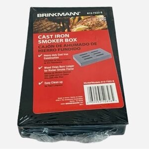 Discover the NWT Brinkmann Cast Iron SMOKER Box, the perfect #grilling accessory for your #barbecue adventures. Sized at 8”x5”, this premium cast iron #SMOKERBox is designed to infuse your #meat with authentic #smoke flavor. The durable cast iron construction retains #heat exceptionally well, making it ideal for higher #grill temperatures. Simply add your favorite wood chips, and the lid’s vents will direct aromatic smoke towards your food. This SMOKER Box is compatible with any gas or electric grill, enhancing your #cooking experience with ease. It comes brand new with tag, ready to transform your grill sessions. Whether you're a fan of #charcoal or prefer a gas setup, this versatile smoker box is essential. #Brinkmann #CastIron #Oven #Grill #Barbecue #Cooking #BBQ