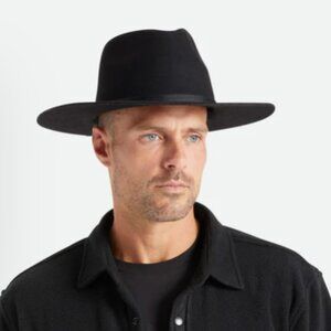 Find your perfect fit with the adjustable interior sweatband. It's finished with a thin grosgrain band and a metal Brixton pin.